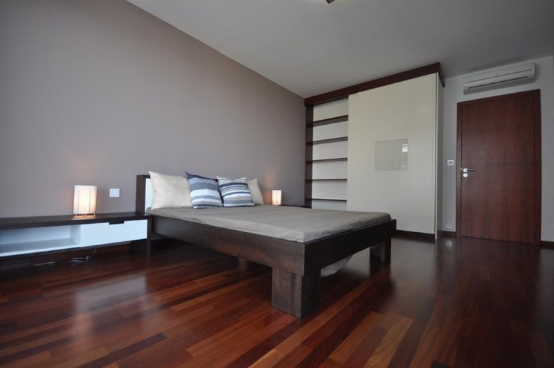 Hlavní ložnice s okny na dvě různé světové strany je světlá a vzdušná a jsou zde vestavěné skříně. V bytě jsou další dvě ložnice, moderní koupelna s vanou a koupelna pro hosty. K bytu je k dispozici podzemní garážové stání za poplatek (5000,- Kč za měsíc), dále je možné využít sklep. Byt je klimatizován a je vybaven kabelovým a satelitním připojením pro TV. V komplexu je recepce s 24 hodinovou bezpečnostní službou.