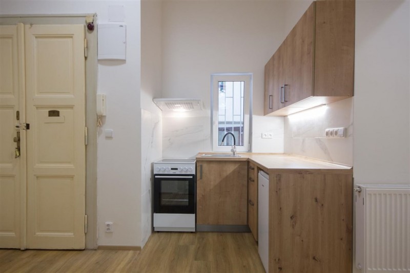 Tento nezařízený 2+kk byt je umístěn v prvním patře tradičního vinohradského činžovního domu s výtahem. Nově zrenovovaný byt nadchne svým vysokým stropem, jeho součástí je také:
