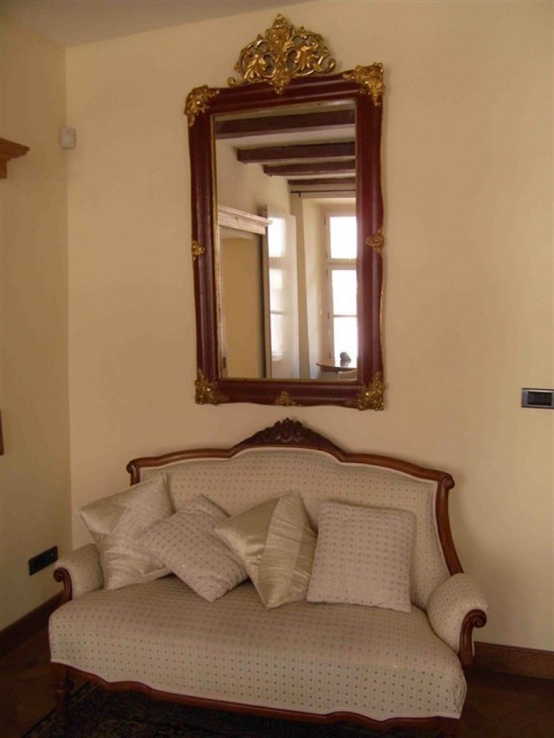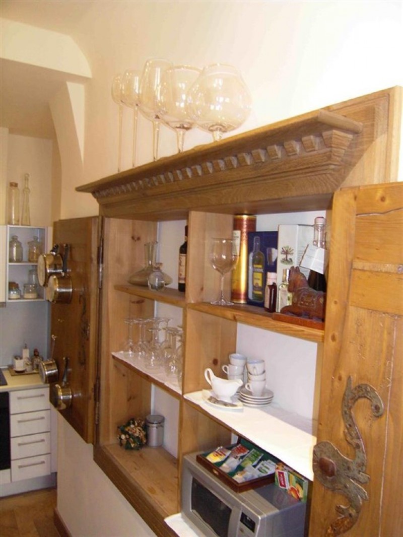 Tento okouzlující byt s jednou ložnicí je situován ve druhém patře citlivě opraveného památkově chráněného gotického domu, který se nachází na Královské cestě, historicky známé korunovační trase českých králů, v samém centru Prahy.