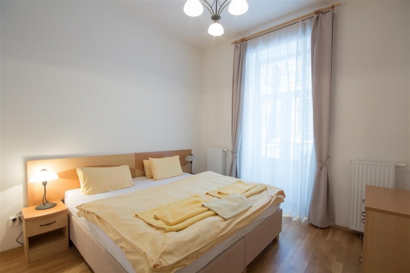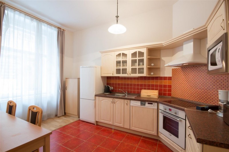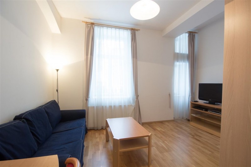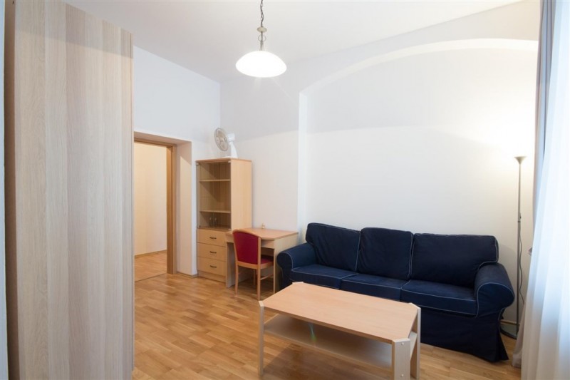 This apartment is situated on the mezzanine floor of perfectly maintained building in Vinohrady area. There is a living room, bedroom with access to a small terrace with views of the beautifully maintained communal garden house, fully equipped kitchen, bathroom and hallway.
