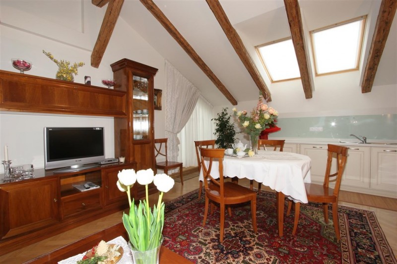 The upper floor comprises a gallery and the third bedroom. The apartment benefits from balcony, air-conditioning, video entry phone, internet and television.
