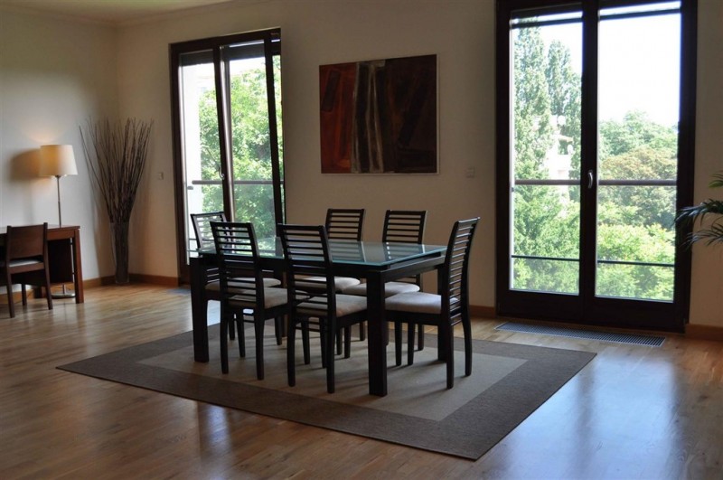 A stylish furnished second floor apartment set in the exclusive Americká Park residence in the heart of Vinohrady. With large windows and hardwood floors, the spacious and bright living / dining room has large French windows with pretty views over the quiet private landscaped gardens. The property further comprises a fully equipped kitchen with built in appliances, spacious master bedroom with built in wardrobes, second double bedroom, bathroom, guest WC, utility room and storage room.
