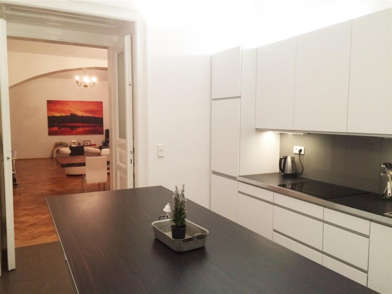 A charming unfurnished 2-bedroom flat with private terrace peacefully situated on the ground floor or a renovated Vinohrady residential building with a unique 4000m2 shared garden.