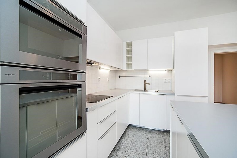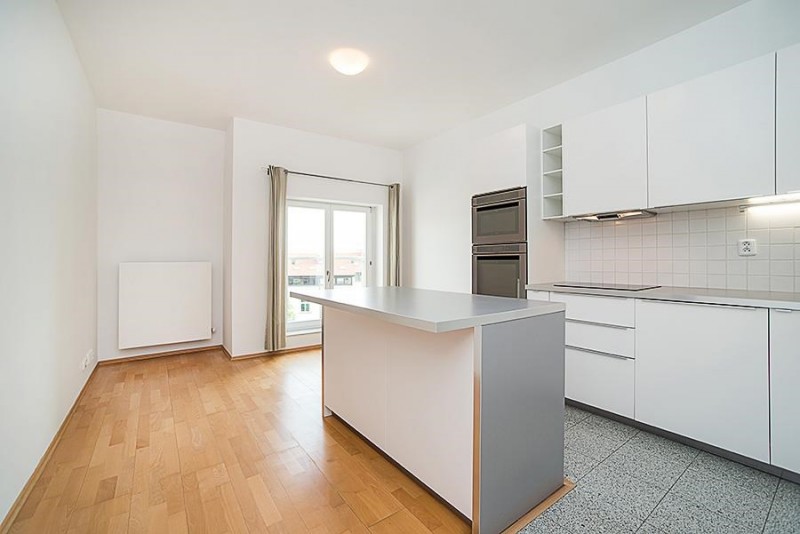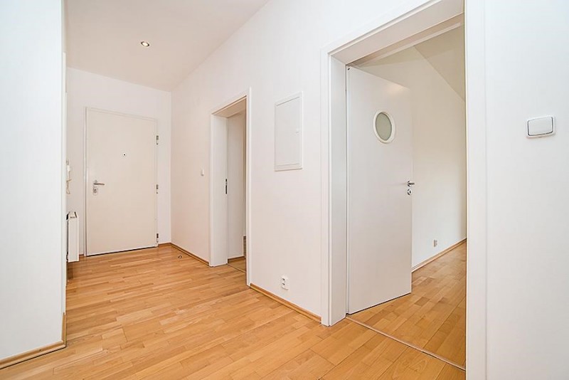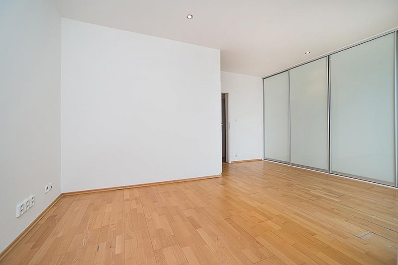 Equipment includes alarm, security door, satellite and cable TV connections and hard wood floors. Garage parking is available in the building for an additional 5,000 CZK/month + VAT