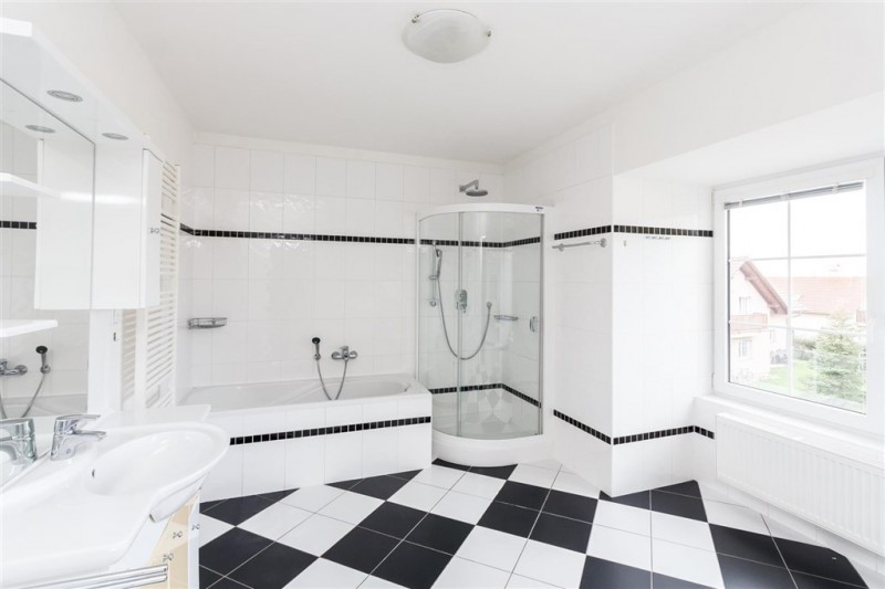 This spacious family house (usable area of 340 m2) with garden (700 m2) is located in a pleasant residential part of Průhonice, close to the village centre.