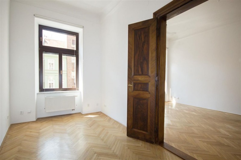 Office space of 63 m2 comprising two rooms plus a separate tea kitchen, bathroom and separate WC. The building is considered an important historical house from 1878 and has original features, including high ceilings, stucco, parquet etc.