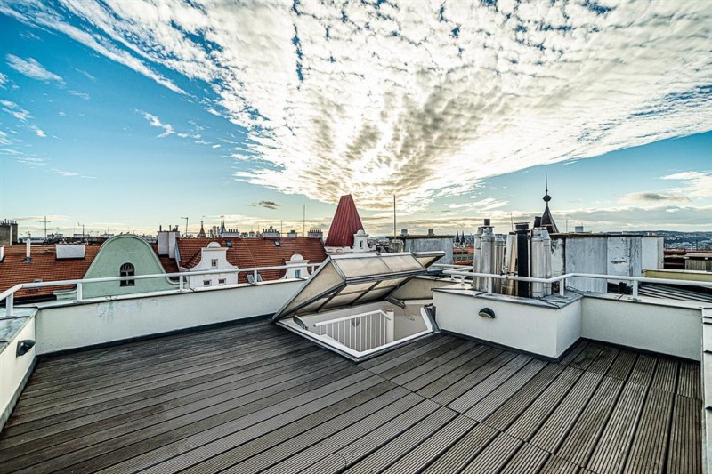 A sensational 4-bedroom duplex penthouse apartment with unique roof terrace with Prague castle views in a renovated Art deco building in one of Vinohrady’s most desirable locations.