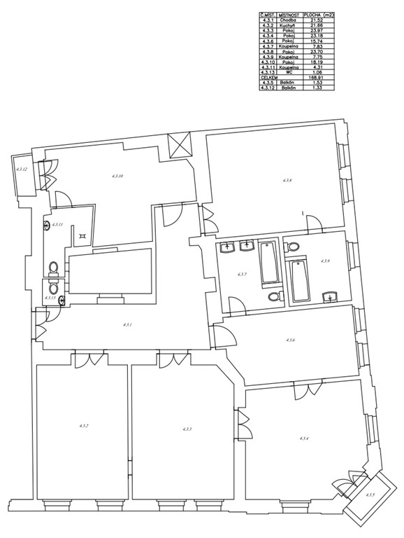 A spacious apartment with two balconies located on the fourth floor of a well maintained residential building with an elevator in Vinohrady.