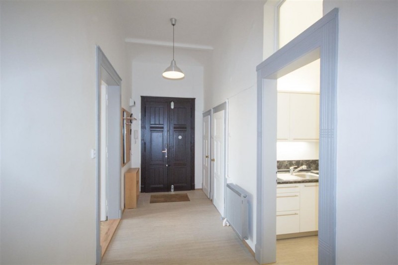 This recently renovated upper ground floor apartment offers airy space with plenty of character within a historic house from 1908. The property features high ceilings with original cornice detailing, restored parquet flooring and well-proportioned front rooms looking onto river Vltava.